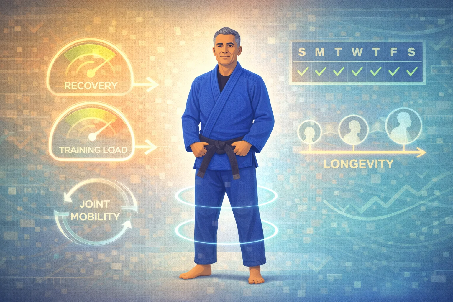 A practical guide for masters-age BJJ practitioners covering injury prevention, smart training frequency, recovery strategies, and how to keep improving after 40.