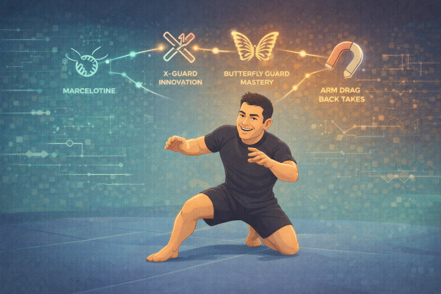 A deep analysis of Marcelo Garcia's legendary guillotine choke, X-guard innovation, butterfly guard mastery, and the aggressive style that made him the most exciting submission grappler of his generation.
